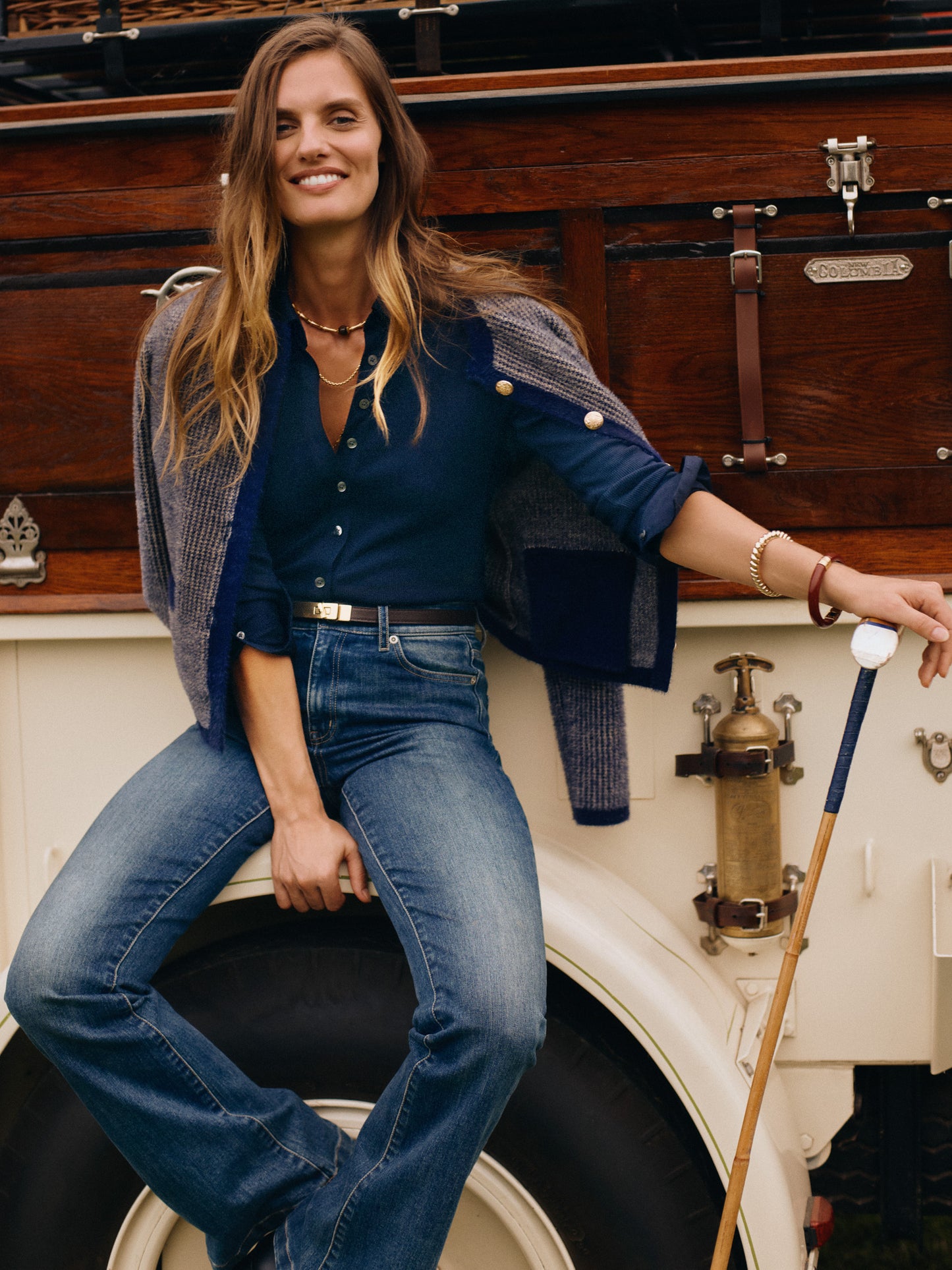 We've taken the classic cardigan and elevated it with special details, from the herringbone pattern, to the soft eyelash knit, to the gold tone crest buttons. It's a must-have piece that goes everywhere, beautifully.