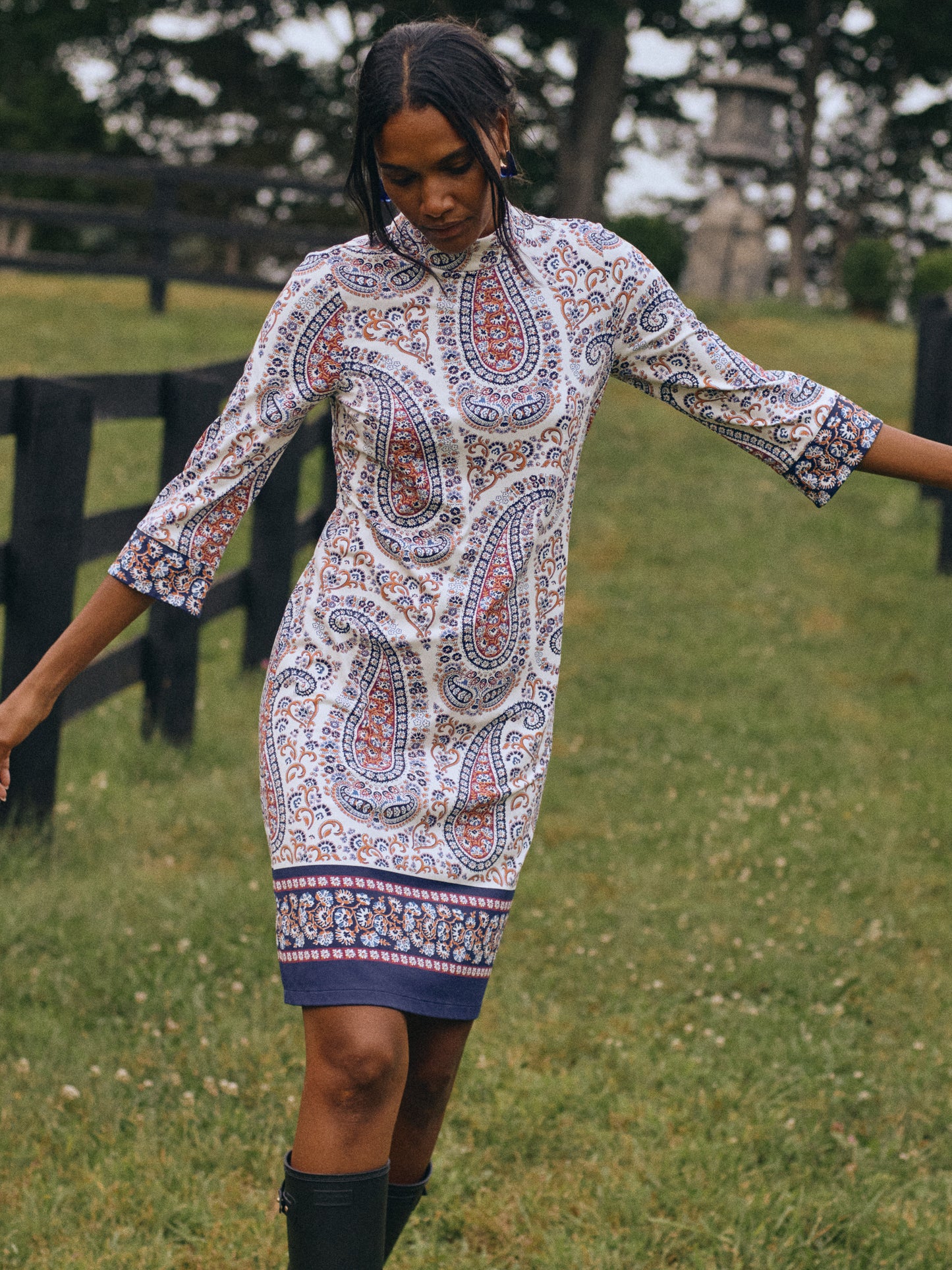 In a playful paisley motif, the Zelda Dress features bell sleeves, a mock neck, and a relaxed fit for a statement outfit made easy.